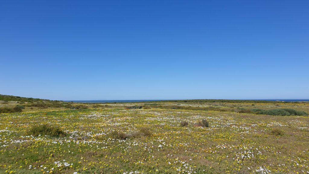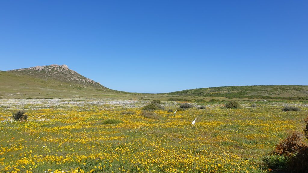 In the late winter and early spring (August and September), the ground-covering wild flowers transform the landscape from Cape Town all the way up to the famous Namaqualand.